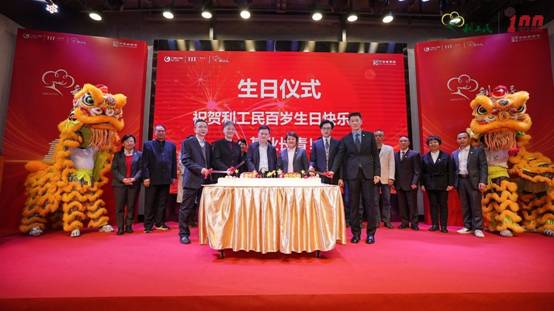 生日儀式點燃了整個現場。特邀領導嘉賓共同上臺,大家一起共祝利工民100周年生日快樂!