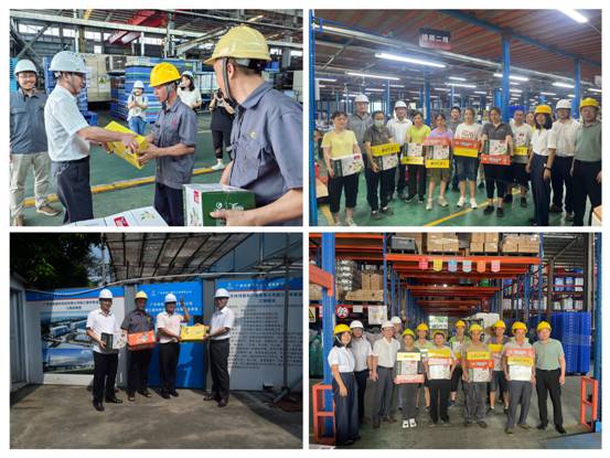酷暑夏日持續(xù)高溫,廣州進入“燒烤”模式。為切實做好高溫天氣下廣大職工的勞動保護和防暑降溫工作,紡織公司領(lǐng)導(dǎo)班子帶隊深入企業(yè)、重點項目工地、廠房、倉庫看望慰問辛勤工作的一線職工,為他們送上防暑降溫品。在這個考驗意志與耐力的季節(jié)里,紡織公司工會持續(xù)開展“夏送清涼”活動,讓職工們感受到組織的關(guān)心與關(guān)愛。