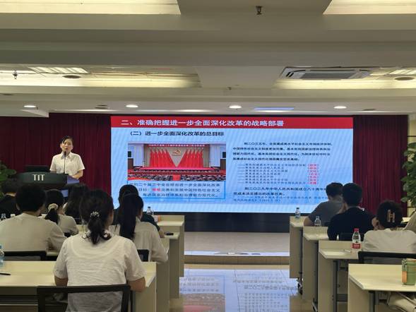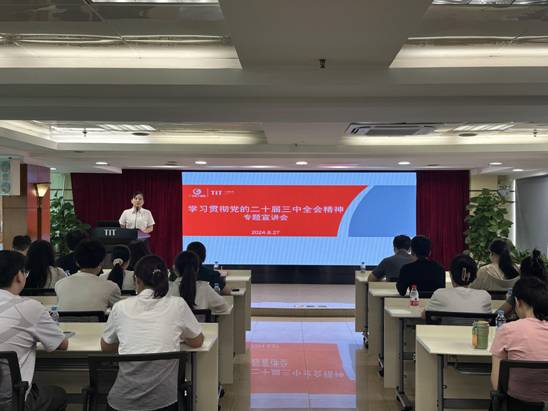 8月27日,紡織公司團(tuán)委書記梁晨在廣德大廈15樓會議室為各團(tuán)組織書記、委員,本部及紡出公司團(tuán)員青年,2024年新入職管培生共47人作學(xué)習(xí)貫徹黨的二十屆三中全會精神專題宣講。在宣講過程中,梁晨通過鮮活的語言、生動的案例,從深刻把握進(jìn)一步全面深化改革的重要性和必要性,深刻認(rèn)識進(jìn)一步全面深化改革的指導(dǎo)思想和總目標(biāo)、重大原則、重要部署,認(rèn)真落實(shí)進(jìn)一步全面深化改革的實(shí)踐要求等方面深入淺出地對全會精神進(jìn)行了系統(tǒng)闡述和解讀。