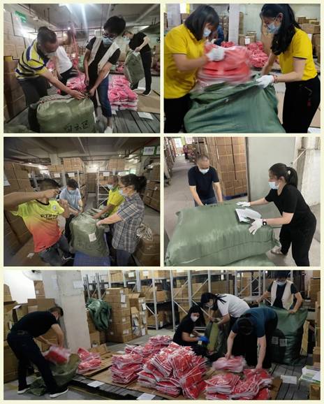 4月11日上午11時許,當紡織公司收到廣州輕工集團要求定制5萬件印有“我是共產黨員”字樣的志愿紅馬甲任務后,公司黨委高度重視,第一時間指導利工民組建黨員團員突擊隊和生產專班,制訂詳細工作計劃及分工。一周內出這么大批的貨是一個不小的挑戰(zhàn),而且馬甲貨源還分散在廣州、佛山及浙江一些城市的倉庫中。如何才能以最快速度調集貨源、如何根據(jù)需求安排好每日出貨量、如何精準配送到每條街道……這些現(xiàn)實的問題都擺在了工作專班面前。面對這些問題,利工民總經理鄭力強迅速理清思路、靠前指揮,一邊率領工作專班與上級部門、供應商保持密切聯(lián)系,對接好各個工作環(huán)節(jié);一邊積極做好內部人員調配工作,確保高效完成出貨任務。